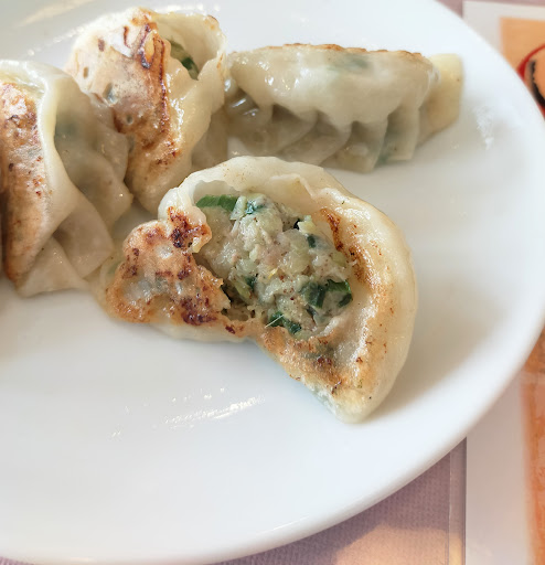 薄皮にキャベツ、ネギ、豚肉入り そのままでも食べられるニンニクの効いた味付け 焼き失敗したのか最初から皮が剥がれて 具材丸見え、ジューシーさがなかった⤵