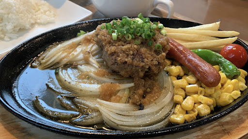 Read moreYummy Hamburg steak with yuzu sauce and onion cooked to perfection on a hot place. Served with salad,...