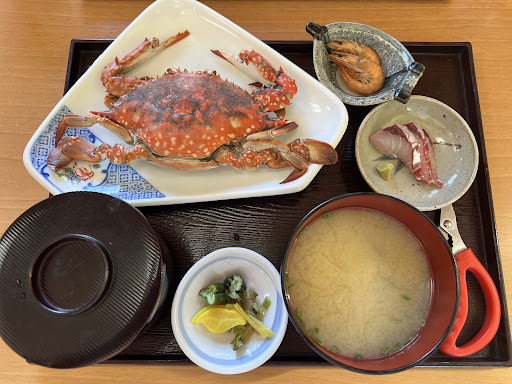 Read more前日、電話でカニ一つ付いた定食でお願いしたところ、お城セットがそれにあたるということで、予約しました。時間どおり着いて席に座ると、子供さんがお茶を持ってくる途中にお茶を落としてガチャン、いきなりびっくりしました。その後、入れ替えたお茶をいただきながらしばらく待ちましたが、やっと出てきたカニの小ささにショック!お値段からして、もう少し大きいかと想像していました。さらに、私たちに配膳しているカニを見たお隣の席の方が、お城セットの大きいカニを注文しているのを聞き、そんなのもあるの?メニューにもなく、予約時にも聞いてくれなかったのにとダブルショック。支払い時にその件を聞いてみると、大きいカニのお城セットを頼む人がいるんですよと返事。少し高いでも、大きいカニの方が良かったです。初めてなのだから、教えてくれたらいいのに。車で3時間かけて竹崎まで来たのに。大きいカニが少なくてと言っていましたが、この後行った道の駅には、大きなカニがいっぱい、安価で売っていました。これからは、カニの大きさを確認してから、予約しようと思います。でも、...