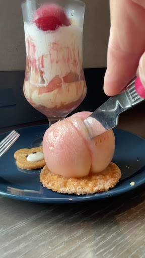 ❤︎ ︎桃の中にはカスタードと生クリームが入っていて、下にはパイが!