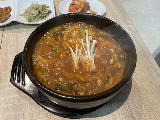 Read moreたまたま知り伺いました。 この辺りにはない韓国料理屋さん。 店内のディスプレイ(テレビ)でK-POP(YouTube)が流れてます。 入店時にまだ商品が提供されてないらお客様が3組程いられてので、入店から注文、提供まで40分程かかりましたが、K-POP好きの私達はゆっくり見られるので逆によかったです。 肝心の料理ですが、妻はキンパ、私はサムギョプサルのランチを頂きましたが、どれも美味しく頂き幸せなひと時でした。韓国料理は付け合わせも沢山ついてきますが、どれも美味しいく、本当に800円でよいのか罪悪感にかられる程。 今時、ラーメン一杯も800円程する時代。K-POPを聴きながら、ゆっくり美味しいランチを食べて800円は素晴らしい。 ランチメニ...
