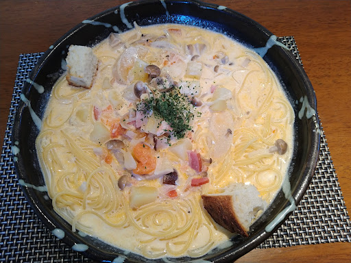 Read moreジモトのマダムに人気のパスタ屋さん。メニューも豊富でハズレ無く安定した美味しさです。営業時間に注意が必要なのと、子供メニューが無いので子供が残す分を考慮して注文するか、パスタを大盛りで頼んで取り分けするのも良いかもしれません。 サラダはスモールサイズでも満足でドレッシングが美味しい、コスパを考えたら最高のお店だと思います。 地域柄、1人1台の車で来店するので駐車場は結構いっぱい。11時~14時は禁煙でカウンター...