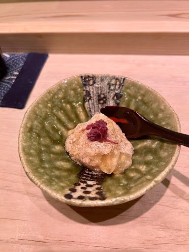 ・おまかせコース ¥18,000 前菜 刺身 一品料理 握り 椀物 デザート 素材の良さは文句なし。きめ細かい包丁捌きから提供される料理はどれも丁寧な味。素材を最大限活かした創作料理。握りはシャリがや固めで、鮮魚とのバランスは完璧。特に印象的なのは、のどぐろ・ホッキ貝。口に広がる風味、鼻から抜ける風味。 自家製小豆アイスのコース終了後、シャコだけ追加。これまた文句なし。
