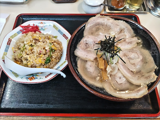 頼んだのは ワタシ チャーシュー麺 半チャーハンセット 旦那 ネギ塩ラーメン大盛り シェアで 餃子と 館林名物 煮豆腐です☺️ 値段も 良心的価格で素晴らしいです☺️