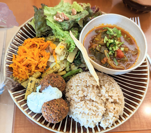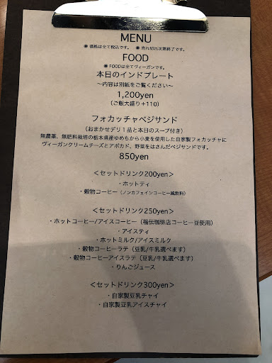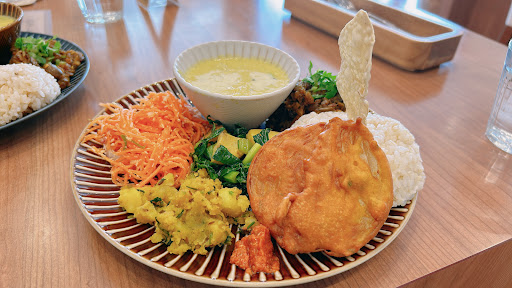 Read moreインドのお客様と訪問。食事は制限が有りビーガン料理とグルテンフリーとの事で館林ではここのみで初めて訪問。 インドプレートのカレー2種類と野菜デリー4~5品にご飯付(1300円)とデザートにイチゴタルト(650円)を頂く。大変美味しくインド人もビックリの味に感動して頂きました。店内もオシャレで清潔そして料理の材料の説明までして頂き親切な店員さん。駐車場も有り、ヘルシーなビーガ...