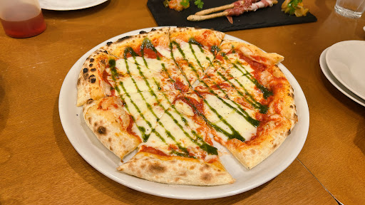 この日は数名での訪問だったので、いろいろなメニューをシェアして楽しむことに。 まずは定番の「マルゲリータ」。トマトソースとモッツァレラ、バジルのシンプルな構成ですが、それゆえに素材の質が際立ちます。生地は薄すぎず厚すぎず、耳はふっくらもちもち。トマトソースの酸味とチーズのまろやかさが絶妙なバランスで、「やっぱりピザはシンプルが一番」と思わせてくれる一枚でした。