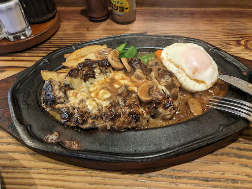 Read more今年、初のランチ。少し足を伸ばして館林洋食で検索。 何軒かの候補のなか、投稿写真に惹かれ期待しながら来店。 11時開店と同事に店内へ、店員さんに促されてテ-ブル席に。 メニューには、料理の写真は、掲載されておらず、料理名のみ。カツ、ステーキ、ハンバーグ、ビ-フシチュー、オマ-ルエビ…洋食の定番ズラリ! ステーキ欄に6700円の文字が! 普通サイズのステーキも2000円以上から…高い!食しては、いませんが、多分美味しいのだろう?正月とは、いえいきなリ2000円以上のステーキは、今回は、見送り、友達は、ハンバーグ、自分は、しょうが焼きこれにセットのご飯と味噌汁お新香付を注文。セットにすると2000円弱位。少しすると、予約の5人のお客さんと、カウンターに一人、一人のお客さんが。どうも常連さんらしい。厨房付近を見てみると、シェフが何人か。 テ-ブルメニューの他に、壁にお薦めメニューも。値段から推測すると、本格的な肉料理のお店っぽい。投稿写真にあった料理がどれなのか分からず文字で解るものしか頼めなかったのが残念。そうこうしてるうちには料理到着。熱々の鉄板にハンバーグ。こちらは、しょうが焼き。しょうが焼きは、食べやすい大きさにカット。味は、しっかりしていて美味しい。ちょっとしょうぱいかなぁ~位。友達のハンバーグもチ-ズが乗っていて肉々しいハンバーグ。セットでついてきた豚汁も、まぁ~美味しい。ハンバーグのライスは、お皿で。しょうが焼きのライスは、茶碗で変化ついてました。値段気にしないで食べられる方は、奮発してステーキ頼んでみてください!食してないので、感想は、かけませんが。 味...