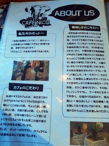 ただ、個人的にはスープカレーの具材には、本場ならではの見栄えもあるのでしょう…実際大きめ野菜は、カフェニコ独自として少し切って入れてもらえると、デートの彼女、ナイフとフォークを使いづらい私にも食べやすく、有り難いなって思います(すみません)