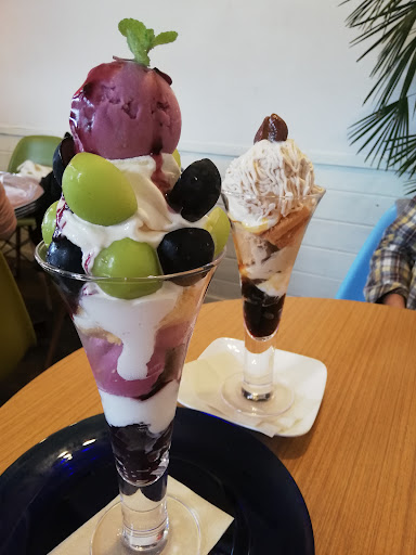 写真は食後に食べたデザートパフェです❣ この時の季節限定のブドウは今は多分無いと思いますが、栗🌰もどっちもとぉーっても美味しかったぁ😍