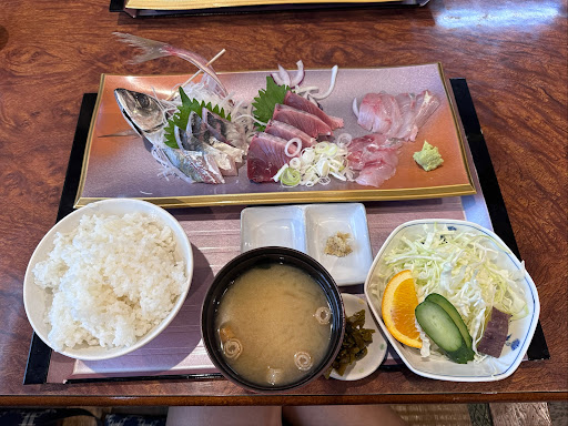 Read more土曜の昼時に利用しました。 少し早めに行ったのですんなり入れました! 車はお店の前に5、6台停められます! メニューはとても豊富で数十種類あると思います! 他の方が注文しているのをみると刺身、焼き魚、煮付け、なめろう、ハンバーグ、生姜焼き、ナス味噌炒等色々なジャンルを頼んでおり、どれも美味しそうでした! 今回は悩んだ末に秋のおすすめのお魚という文言に釣られ刺身定食にしました! お刺身の内容は鯵、ムツ、カンパチ、カツオでした!鯵は姿盛りで見た目も良いです! どのお刺身も新鮮でカツオは薬味と合わせて食べると最高でした!ムツは脂が乗っていて美味しいです!また、ご飯はボリュームが多くとても満足できました! 肉類の定食も美味しそうだったの...