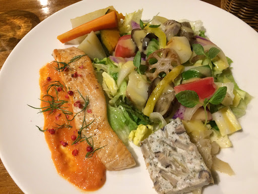 All around great dinner experience. We ordered the salmon set menu with an extra bowl of soup. Beautiful presentation. The salad was tasty with many vegetables including gobo, lotus root, eggplant and asparagus. Salmon was well seasoned and had a nice texture. We enjoyed the veggie soup and bread rolls, which they make. Highly recommend for a delicious meal in a spacious but intimate atmosphere. Perhaps this is the first place I’ll take my mom for dinner when she...