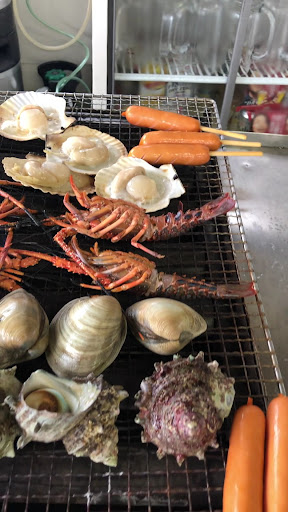 1,500円のセットは、イカ・ホタテ・ホンビノス・サザエ・伊勢エビ・ウインナー・味噌汁・ご飯と、なかなかボリュームがあります。 火力が強いのですぐに焼けます。 焼きながら食べる...と言うより、お店のおじさんが、全部並べて、説明するから後は勝手にひっくり返して。という感じです。 焼き場が端なので、素人の自分には5人分をさばくにはかなり忙しかったです。手が熱かったし...(笑)