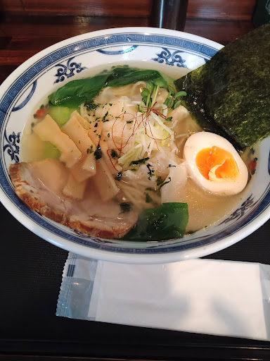 塩ラーメン専門店とのことで興味があり以前から気になっていた為、食べてきました まず、営業中のプレートは出ているものの営業してるのか確認したくなる雰囲気… なので、車から降り営業してるのか聞きに行きました そして、駐車場に停めて店内に… 入る…無音です… FMとか有線とかTV…全く無しで シーーーンっとしてます(・o・;) 居心地悪い… 他のお客もいなく店主だけで 何故か連れは、ニヤニヤしてます… カウンターは使えない感じで、テーブルが6席 本当に静かだな(・o・) そして塩海老ワンタンラーメンを注文 作ってる音だけが聞こえ 気がつけばエアコンも入ってなく窓を開けて換気をしてる様子もない… 空気も止まってる感じで少しムシッと湿度を感じます そして食べ始め かなりの薄味だけど美味しく 麺も程よい硬さです チンゲン菜、メンマ、タマゴ、チャーシュー 美味しいです そして海老ワンタン、噛むと海老の香りが広がりプリプリしてて美味しいが! かなり味が薄すいです で!汗だくです 湿度が高く空調も無いところで熱いものを食べてるので、汗が吹き出しまくります 折角美味しいのに 雰囲気、快適性、居心地0点です。 入店前から帰るまで誰...