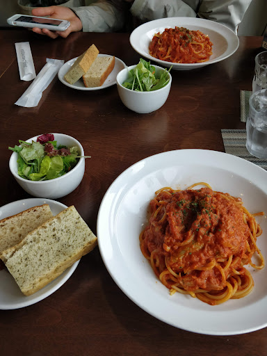 で、出てきたコース料理には全員エビは使われていませんでした。??? 魚介のトマトスパゲッティにもエビは入ってなくて、イカの比率が異様に多かったと感じました。