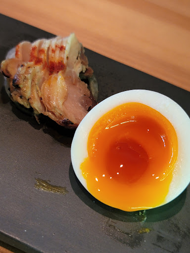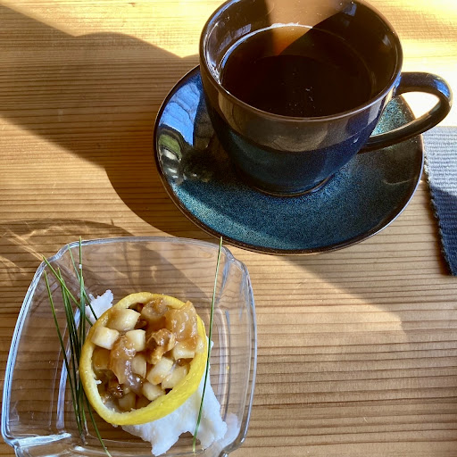 Read more初来店。前菜7種と蕎麦と抹茶のランチを注文。(2300円)前菜は全部しっかりした味でメリハリがあり美味しかった。半熟煮卵(じょんたまご)、親鳥を焼いて極薄にスライスした物、セリとシラスのレモン和え(皮も使用)、筍土佐煮、きずしと若芽の酢の物、蛍烏賊の酢味噌掛け、黒胡麻を使った団子の揚出し(外はカリカリの薄くず餡)蕎麦も細く、つゆはしっかり出汁が効いて抜群。薬味に大根の荒卸?と生姜で相性が良く美味しかった。追加で海老のかき揚げを注文、海老のみをかき揚げにしてあり薄衣でカリッと揚げてあり美味しかった。最後に立てた抹茶と秋田県のもろこしが茶菓子に出てきた。料理されてる方が外国の方でこの人がジョンさんかな?奥さんと2人でされてる感じ。予約して行ったがすぐに満席に。人気があるみたいで、平日だったが退席時間指定あり。でも充分ゆっくり出来た。古民家で表玄関から雰囲気の良い庭を通って入口へ。料理を食べるのに抜群のロケーションでした。最初に表玄関までお迎え、最後にお見送り、おもてなしもいい感じでした。夜は4名以上で前日までに予約すれば季節の会席料理が食べれるみたいです。8000円くらい。全部美味しかったので、定期的に来たいのと、夜も来ようと思えた。駐車場は市営の1日300円の第2駐車場から徒歩10分程。距離的には龍野...