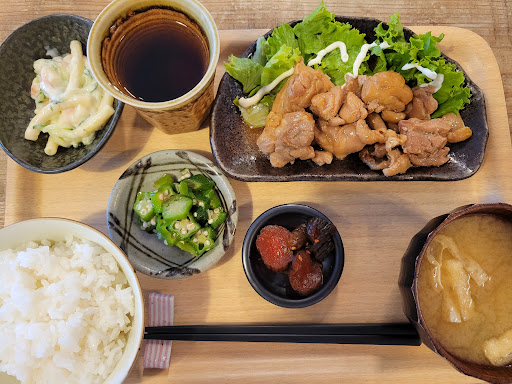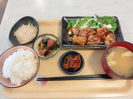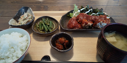 Read more日替わりランチとハンバーグ定食を頂きました。 日替わりは値上がりしたようですがそれでも600円と激安、ボリュームたっぷりでメイン(鶏照り焼き)も小鉢も優しいお味で大満足でした。 アイスキャラメルマキアートとアイス抹茶オーレを食後に頼みましたが、飲みきれない程の大きさでビックリ!(湯呑みと並べた写真で大きさをご想像下さい)