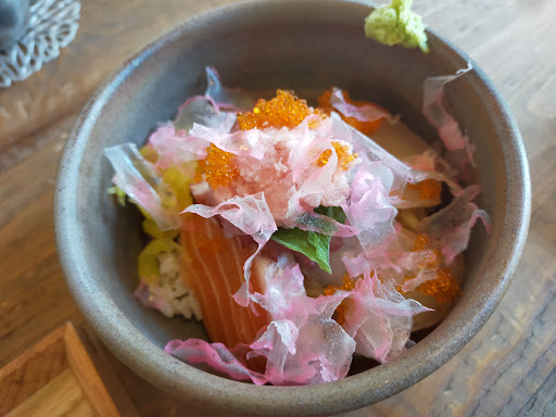お店の中は想像してたより広かったです。女性の好きそうな、すっきりとした中に温かみのある店内です。 訪問日は雨でしたが、庭に見えるパラソルから滴る雨に風情を感じました。 ちらし寿司のランチをいただきましたが、どれも美味しくいただきました。 程よい酸味と甘味で、バランスの取れた味です。見た目が可愛くて、崩すのがもったいないですが当然食べました(笑) ハート型のグラスが愛らしく、お茶も飲めないほど熱くなく温かい、という感じで美味しく頂戴しました♪ おなかいっぱいになる量で、コスパにも大満足! ご主人の心遣いも細やかで、雨ながら楽しいひとときを過ごさせていただきました。 美味しく楽しくいただきました。 ちなみに、ちらし寿司のランチは税込み¥1,650です(´艸`) ご馳走さまでした。・+(人´∀`)+・。*