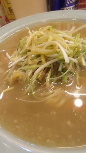 Read more初の訪店です。土曜日のお昼時に入りましたが狭めな駐車スペースは一台分のスペースしかも一番奥しか空いていませんでした。自分の車は全長が5メートル近く有りなので前向きでハンドル切り返しなんとか駐車できました。店内はほぼ満席、入口直ぐの券売機で自分は定番のネギ味噌を、嫁は味噌を選び店員さんのご案内でカウンターに座りました。スタッフさんは5人で全て女性で、ちょっと驚きでした。店内を見渡すと殆どの方はつけ麺を食べておられました。おすすめはつけ麺と貼り紙ご有りましたが自分は豚骨スープのラーショウのネギ味噌を食したいので注文した次第です。待つ事5分で着丼です。スープは期待したとんこつ感無くあっさりで塩味が強く、つけ麺でも食べれるくらい、麺は丸中太ややウェーブの多加水麺ツルツル喉越し良い感じネギはこの時期の越冬タイプでなかなか辛い生で食べる感じでは無い感じでした。ラーショウはしばりがあまり無いフランチャイズと聞きますのでお店独自なスタイルになるのですね。つけ麺ファンに愛されているお店だったんですね。口コミ後読みで知りました。スタッフさんは分業きちんとされ、阿吽の呼吸の仕事ぶり 感心して拝見させていただきました...