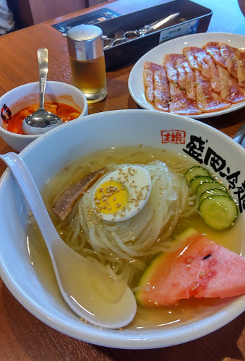 Read more久しぶりの天童店、いただいたのは、私も友人も ランチの冷麺&元気カルビ。いつもなら友人はネギ玉ライスとカルビで、焼いた肉でライスを巻いて食べるんですが、今日は めちゃ暑い日だったので さっぱりしたのを食べたかったんだそうです。 それから 元気ウインナーとミニキャベツ焼き。しっかり焼いて あっついのをフハフハ言って食べました。