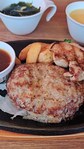 Read moreハンバーグを焼くペレットが無くなって、店できれいに焼いてくれて提供されるように変わっていて、その点は良くなってました。エビフライは隣のほっかほか亭の方が美味しいです。 私は店前に置かれたアルコールのノズルを触るのがきもくて嫌で、店に入る前の水道と石鹸で手をしっかり洗ったのですが、その後アルコールしろと、ババアがきかないので、嫌々やりました。ノズル触りたく無いです。お金がないのかもしれませんが、足で踏むノズル触らない奴置いて!ほんとうに最悪です 入店を辞めたらよかったのですが、今更です。もう行きません。 バイキングは透明のカーテンがあり、マスク着用、手袋着用の上の利用になります。 ですが、子供は放置されてました。素手でノーマスクで利用していましたが、店員は放置してました。 ドリンクバーでコップにジュースを上手に入れれなくて、手についたジュースを子供が、ドリンクバーのドリンクでてくるところに...