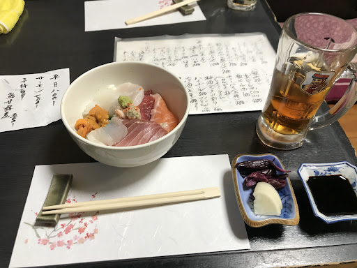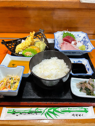 ランチで訪問しました。何度か通りかかった際に営業されているのかハテナ?と思っていました。本日は暖簾を確認し、入店しました。 ランチは何種類かメニューがありましたがお造りがメインのメニューは本日売り切れとのこと。 目の前に美味しそうな魚介が見えるのに残念!これらは夜のメニュー用なんでしょうか。 とにかくオーダーして写真の定食が運ばれてきました。お魚が美味しい!お食事は素晴らしかったです。もし、お店がもう少しキレイならもっともっとお客さんがいらっしゃるお店だと思いました。 ごちそうさまでした。あ...