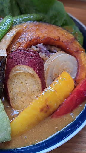 We went here on Sunday after visiting Isonokami Gingue. The restaurant is within walking distance. The local Vegetable curry tasted so good without any meet, it was excellent. We also had the other lunch menu that all made of local Veges, that presentation was geat!. I liked the strawman in the front entrance, that looked so real from far. They have plenty of parking...