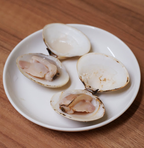 今回注文した貝は、牡蠣(生、焼)、ひおき貝、はまぐりです。前述のとおり、焼き貝料理がメインで、それ以外の料理は少ない印象でした。しかし焼き貝は丁度良い焼き加減で提供されることもあり、滋味豊かで味が濃く、とても美味しくいただくことができました。このまま焼き貝だけを永遠に食べ続けていても良いのでは、という錯覚を感じるくらいなので、貝好きの方はもちろん、そうでない方にもおすすめできるお店です。なお貝類以外にも、イカソーメンや〆の伊勢うどん、クーポン利用でいただいたシラスも、いずれもかなり美味しいものでした。