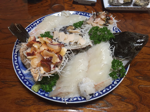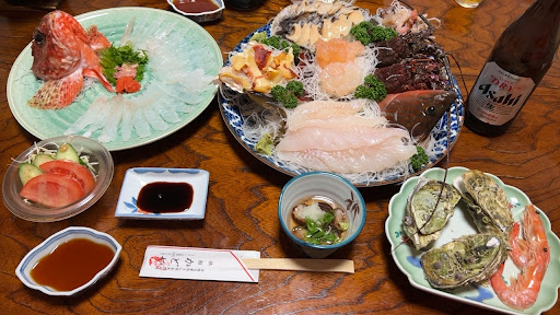 5人予約で行きましたが、大皿2枚にヒラスズキ と ヒラメの刺身 それに サザエにアワビ(* 'ᵕ' )☆とか貝3種 魚の煮物 サラダ サザエの壺焼き エビ焼き アオサのお吸物 カキフライ それと元祖ウニご飯…どれもこれも旨い( ゚д゚)ンマッ! 贅沢しまくり~ ...
