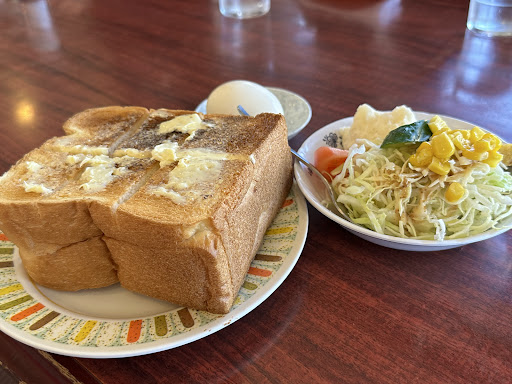 エッグトーストの卵が分厚くて驚きました。 からしをマヨネーズに入れることができるようで注文時に聞いてくれます。からしマヨがエッグトーストに合います。分厚い卵単体だと、気持ち塩加減が効いていたので、からしが塩っ気を気にならないようにしてくれますね。
