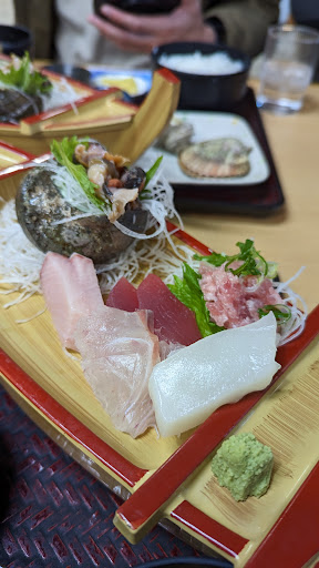 Read more外観は落ち着いた料理店の雰囲気ですが中は食堂という感じです、4人テーブルが6つほどのそんなに大きい店ではありません。 周りを見ると舟盛りのお刺身定食を食べている方が多かった気がします。 私は伊勢海老が食べたかったので奮発して3900円の海鮮丼+1500円のカキフライ&味噌汁アップグレードをいただきました。 これにアワビも足した4900円の海鮮丼もあります。伊勢海老やアワビのそれぞれの原価を考えれば高くはないですが高価であることは否めないですね。 伊勢海老の隣に入っている生の生きたエビは殻をむいてあるなど食べやすい工夫はしてあります。生きた伊勢海老とエビが2本のってる以外は普通の海鮮丼です 念願の伊勢海老は美味しくいただきました。 追加したカキフライは6個ありさすがに量が多すぎました。マグロの海鮮丼など単品の海鮮丼もあるのでそちらとの組み合わせはありだと思います。 別棟で生簀がありそこに伊勢海老など保...