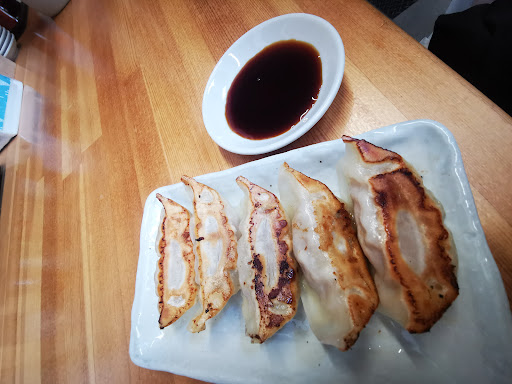 プラ橋のほか、割り箸も頼めば貰えるようです。 カウンターには調味料を入れる小皿が積んであるのですが、一番上の小皿には何かが飛び散った痕跡があり、不衛生さを感じました。 餃子を頼んでいたので、小皿は下の方から取って使いました。 餃子は皮が硬めで餡は水分が全くなくパサパサな餡でした。 やはり、肉汁がドバっと出で「熱つっ」と言いながら食べたいだけに残念です。