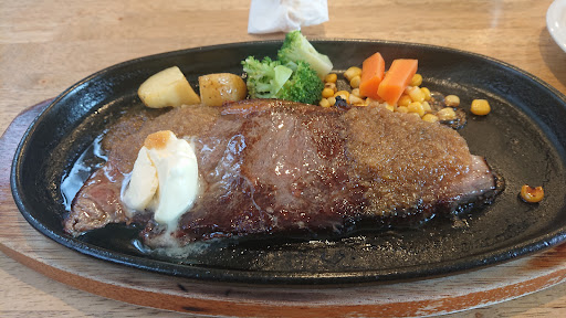 写真の「サーロインステーキ」と黒板に書かれている、「ハンバーグステーキとソーセージ&クリームコロッケ」をいただきましたが、ステーキはちょっと硬めでしたが、1300円という価格を考えれば満足できるレベル。 一方ハンバーグは昭和世代には懐かしいハンバーグヘルパーで作った家庭のハンバーグの上級版的なスパイスが効いた味で厚みがあり 適度にふわふわしたハンバーグで懐かしさも相まってとても美味しくいただきました。 付け合わせのクリームコロッケは カニの風味も効いていて、セットのサラダのドレッシングと合わせて今回一番のお気に入り、とても美味しかったのでリピート確定です。