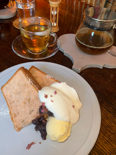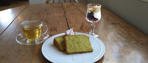 “ミルク仕立て“のグリーンティーと書いてあったくらいなので、ミルクが入っているのかな?又は入れるのかな?と思っていましたが、いざ目の前に来たのは、普通のグリーンティー...?の見た目!3分置いていざ飲んでみようと、香りを嗅ぐと何とミルクの香りがっっ!!!飲んでみると、クリーミー!!!!びっくりしました。とっても美味しかったです。サクラのシフォンケーキには、餡子、ホイップクリーム、アイスクリームが添えられており、一緒に食べるとコレまた美味しい🤤本当は、スコーンが食べたかったのですが、材料費の高騰などが重なり今は作っていないそうです。ですが、とても満足でしました!店内も可愛く、ゆっくりできました。また機会があれば伺いたいです。