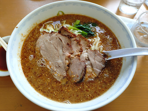 Read more仕事で近くに来たので、以前食べて美味しかった「夢の家」さんへ行こうと思ったら、定休日だったので近場で評価高めなこちらに来ました。 平日ですがお昼過ぎだったので、まあまあな混雑。 10分弱で席に着けました。 オススメを定員に聞いたら、担々麺がよく出ますとのことなので、餃子と合わせて注文。 最初に担々麺が出てきました。 ゴマをたっぷり使ったスープは担々麺にしてはややあっさりめ。 そしてややヌルい。 ラーメンは熱々じゃないとだめですよねぇ… 次に麺を食す。 う〜ん… これ茹で過ぎでは? 歯ごたえがまるでないテロンテロンな麺。 コシは皆無。 おまけにツルツルしてるので、スープに麺が全く絡まない。 なんですかコレ? ホントにクチコミ4.2のお店? たまたま今日は不味かったのかな?? 最後は餃子。 やたらデカい。 普通の3倍はあるかな。 味は普通。 ただデカいだけ。 一口ではとても食べ切れない大きさなのに、一口目から皮が開いて中身が溢れる。 もったいないから餃子も担々麺も残さず食べましたが、担々麺はカップ麺でもここより美味しいやつありますよ。 総評:担々麺★ 餃子★★