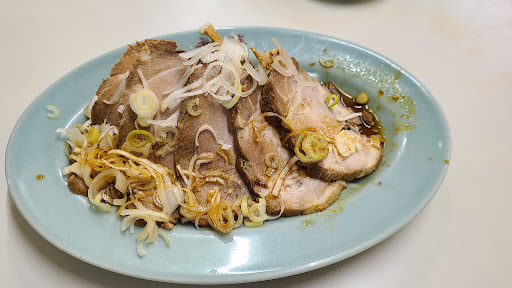 Read moreいつ通っても駐車場がいっぱいで、入ってみたいと思いつつ通りすぎていたラーメン🍜屋さん。 お店は、かなり古い作りで…🙄 仕事も早く終わり温かいのが食べたい❗って思って夕飯🌃🍴には少し早いけど混雑を考えて行ってみた❗ やはり早かったのかお客さんいない~🤣 カラカラとドアを開けると赤いTシャツ👕の人が厨房から『食券を購入してください。』と…メニューは多くないのでテキパキと買って好きな席に座る。 お冷とおしぼりを持って来て食券を持って行った。 しばらく待って次々とオーダーした品が運ばれてきて『いただきます🍴🙏』ラーメン🍜はちぢれ麺で美味しかった😋🍴💕餃子も大きくてビックリ👀おつまみチャーシューは…ピリ辛で味は美味しい…でも、冷たかったからか固い⤵️食べきれずラーメンに入れて温めて食べた😅思ったけど…全て量が多い気がする🙄 何とか残さず食べて退店したけど~😓 だれ~も『ありがとうございました。』の一言がなかった⤵️忙しいのかもしれないが…みなさん愛想が全くないお店…美味しいかったの...