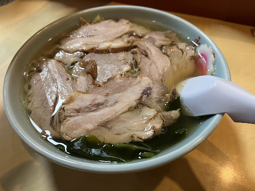 Read more大きい佐野餃子が食べたくて初来店。 昔から営業しているのが良くわかる外観。 注文は券売機でした。 お店の方はとっても丁寧な接客で感じが良く、あっという間に店内は満席に。 チャーシューメンは麺が全く見えないくらいのチャーシューで覆われていました。 楽しみにしていた餃子は本当に大きくてもちもちの皮にたっぷり詰まった餡で期待通りとても美味しい。 餃子と半ライスを頼んだらたっぷりのスープに細切りのチャーシューがセットで付いてきました。 とても美味しい餃子だったので、子供達にも食べさせたくて生餃子をお土産に購入してしまったほどです。 リピ確定です。ご馳走様でした。