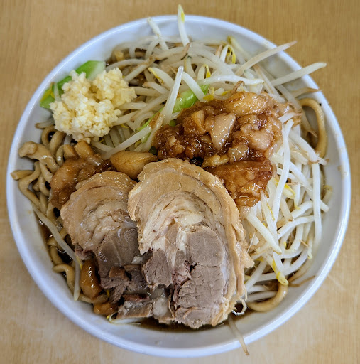 【魚介のしょうゆらーめん】 出汁が一般的な煮干しラーメンの3倍は濃いほぼつけ汁な清湯魚介ラーメン 背脂を入れて燕三条風にしても美味しいです 【ガッツリらーめん大】 いわゆる二郎系ラーメン スープも出汁がしっかり効いていました。 チャーシューは柔らかくて大きく味も絶品 【ガッツリラーメンカレー味噌大】 本格的でスパイシーなカレースープ チーズが入っているのも良かったです。 ライスを合わせても良いと思います。 【特製濃厚らーめん大】 つけ麺用のスープで食べるラーメンですが、濃厚さが他店の比ではなく、甘さがほぼないです チャーシューも分厚く食べ応えがあります 【カレーみそまぜそば】 極太ちぢれ麺&大きく分厚い炙りチャーシューが美味しい混ぜにくいまぜそば しっかりスパイシーです まぜそばのカレーみそとは異なります 【追い飯チャーシュー&ネギ】 チャーシューがゴロゴロ入った追い飯 スープが染み込んでめちゃくちゃ美味しいです【追い飯ネギチャーシュー】 ゴロゴロチャーシューがインパクト抜群 あっさりめの味付けでさっぱりした〆になります 【冷やしまぜそば】 生姜が効いたさっぱりしたつゆだくのまぜそば 麺のコシがすごいです 【ミニチャーシュー丼】 ゴロッとしたチャーシューがゴロゴロ入っていてミニって量では無いです 生姜でさっぱりするので追い飯的に食べても美味しい 【濃厚つけ麺】 いわゆる魚介豚骨つけ麺 甘さ控えめで濃厚さも麺のコシも県内では最強クラスです