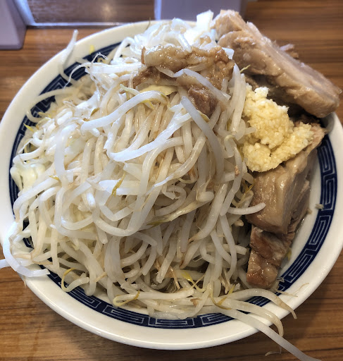 再再訪 数ヶ月ぶりに食べに行きました。 平日の13時頃で並び数人、食券を先に買ってから並びます。 ラーメン大(300g)プラスで豚をトッピング。 コールは、野菜ちょいマシニンニクアブラを少し。前回と同じ。 野菜の量は前に来た時より多いなと感じました。 個人的にはもう少しクタクタのが好みかな。 ニンニクはダブルにすればよかった。私にはちょっと足りなかったです。 次回はダブルにしよー。