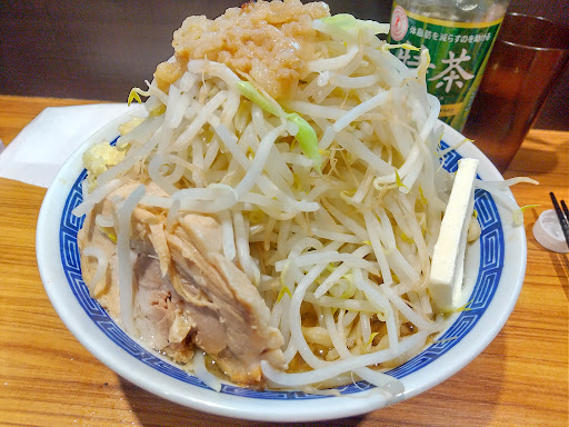 再再訪 数ヶ月ぶりに食べに行きました。 平日の13時頃で並び数人、食券を先に買ってから並びます。 ラーメン大(300g)プラスで豚をトッピング。 コールは、野菜ちょいマシニンニクアブラを少し。前回と同じ。 野菜の量は前に来た時より多いなと感じました。 個人的にはもう少しクタクタのが好みかな。 ニンニクはダブルにすればよかった。私にはちょっと足りなかったです。 次回はダブルにしよー。