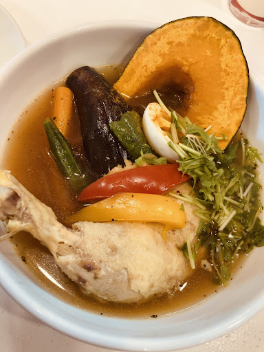 Read more【2022年4月】 休日13:00過ぎにランチ訪問。ランチタイムは11:00ー14:00。すぐに着座できました。改札を出て、右手側の道路へ出ると赤くて大きなカレー写真、とっても目立つのですぐにわかります。この立地は最高!カウンター、2人掛、複数人の席。手消毒。カウンターには白いパーティション。 やわらかチキンベジタブル1080円、2辛(中辛くらい)、ご飯普通盛(ファミレスの普通盛くらい)、自家製ラッシー(ランチタイムはドリンクサービス)を注文。店内にカレーの写真が貼ってありますが、メニューは文字だけなのでイメージつきづらいです。スマホの投稿写真を見ながら決めました。(写真投稿してくださった皆さん助かりました。ありがとう!) 水はおいしかったです。テーブルにポットありでありがたい。自家製ラッシーは、すっきりタイプで飲みやすく、カレーによく合いました。チキンは骨付きレッグです。スプーンで簡単にほぐせるほど柔らかい。素揚げされた大きいごろごろ野菜もとてもおいしい。カレーというよりカレー味のスープという感じかな。とはいっても、薄味ではなく、しっかりスパイスも効いていて美味しかったです。次回は3辛(辛口)にしてもよいかも。標準お腹の私で腹8分目です。支払は各種カードやIC、Paypayも使えました。美味しかったで...