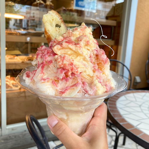 Read moreインスタに、天然酵母と国産小麦使用。ホームページには国内産小麦もできるだけ使用しております。(国内産小麦100%の商品も多数あります。)と記載されています。ほとんどのパンに国産小麦が使用されているのかと思いきや、実際はそうではないようです。店内のパンの価格が書かれている札を見ると100%国産小麦使用と表示されているパンは、極僅かです。要するに大多数のパンが外国産小麦で作られている、ということになります。発ガン性のあるグリホサートを含む小麦の摂取を避けたい為に探したパン屋さんでしたので、何だか騙されたような気持ちになりました。テラスがある雰囲気のいいパン屋さんで、店員さんも感じが良く、味もいいので、ここは是非、国産小麦(値段が高くて大変でしょうが…)の比率を上げて、みんなが安心して食べられるパンを作...