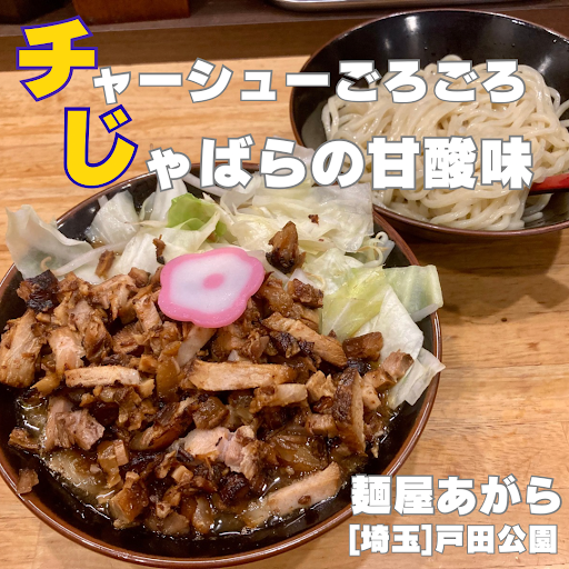 麺屋あがら@ 埼玉県戸田市上戸田5-19-2 どうも、さぴおです ______________ 🍥ポイント ✅刻みチャーシューたっぷりのスタミナ仕様 ✅甘うまジョッパなつけダレ ✅『じゃばら』仕様のキレある甘酸味  ̄ ̄ ̄ ̄ ̄ ̄ ̄ ̄ ̄ ̄ ̄ ̄ ̄ ̄ [点数] 87点 ☆4.2 [アクセス] 『戸田公園駅』(523m) [休日] 日 [注文メニュー] チャーシュー野菜つけそば [並び・システム] 開店30分前で並び2・チケット制 [食材] 動物出汁、鰹武士出汁、鯖節出汁、チャーシュー、じゃばら、花かまぼこ、キャベツ、モヤシ、中華麺 [味] 醤油