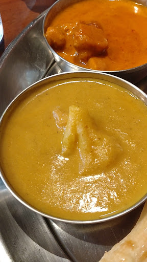 雨の日に訪問。中が見えないので、初見では入るのに勇気いりそう。 この手の店にしては、アルゴビやチャナマサラなど、あまり馴染みのないメニューもあります。今回はカシミリセットをアルゴビとバターチキンで注文。ライスは多すぎるので外してもらいました。本来ライスも付きます。 BGMがない店内で色々調理している音がよく聞こえました。かなり時間かかったので、急いでいる時はやめた方がよさそうです。 待った甲斐あって、熱い出来立てをいただくことができました。バターチキンカレーとタンドリーチキンは特筆することもなく。普通に美味しいです。アルゴビは絶品。歯ごたえが残るじゃがいもとカリフラワーが、お酒に合いそうなスパイスで炒められています。また頼みたいです。ナンはかなり多めのバターが塗られていて、溶けてナンの溝に溜まっていました。でもしつこくなく。さっくりモチモチでおいしいです。 残念だったのは、アイスチャイが午後ティー?だったこと。甘い飲み物は嫌いなので、残してしまいました。 ただ2種類のカレーどれを選んでも追加料金なし、サラダもかなりのボリュームがきたので、高コスパ...