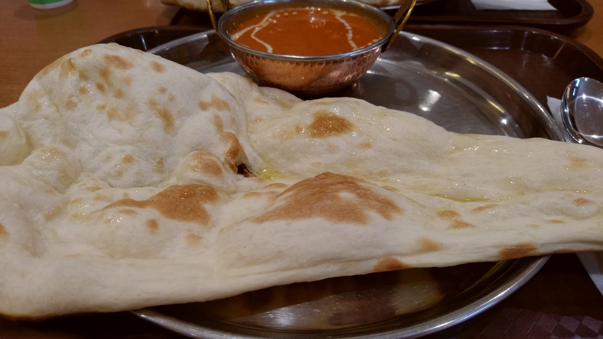 Read moreここのナンは、オーダーを受けてから、 専用の窯で焼いているので、焼きたて、ふわふわのナンが食べられます❗カレーは数種類あって、好みのカレーを選んでセットにもできます。前はナンの入れ物が、籐でできたバスケットみたいなものでナンのクズがいっぱい着いていて、衛生的にどうかなぁと思っていましたが今は、金属のプレートに、小皿に入れたカレーとのせられていてとても良いです。ライスはターメリックライスがありますが、ぜひナンをオススメします‼あと、セットを注文するとドリンクが100円でつけられます。マンゴージュースがな...