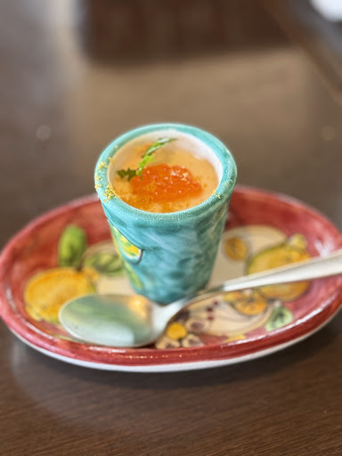 ●注文(★は必食、◎はおすすめ) ナポリコース 4,070円×4 ◾︎1品目 ・紅ズワイガニのパンナコッタ 蟹の風味がものすごく感じる、暑い時期に爽やかに食べられる冷製の前菜です!