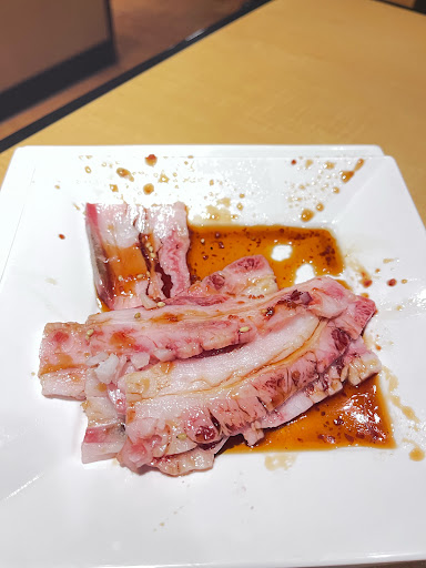 連れと2人でキングコース3608円をチョイスしました。初めにドリンクをオーダーしたのですがなかなか出て来ず、肉の提供され始めたのも開始から10分くらい経ってから。🤔 肉はやっぱり、きんぐカルビでしょ。😋 ハサミでちょっと大きめかな位のサイズにカットしてアブラが滴る所をタレに漬けて。美味い😋 連れはロース派。厚切りロースもハサミでパッチンパッチン。焼き過ぎ注意で口に入れれば美味い😋 この日はサンチュにシミがあったりしてイマイチだったかな。😣提供前によく見て欲しいね。 期間限定の麻婆豆腐自体がスパイシーで、麻婆豆腐にライスを入れたのが美味かったな。石鍋の中でグツグツに煮立っている大きめの豆腐を崩してそこに小ライスを投入して混ぜ混ぜ。これが美味い😋 総じて、きんぐは安心して食べられる。 食べていて途中で肉がなくなるかもしれませんなんて事は言わない😂 ご馳走さんでした...