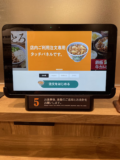 Read more6月8日オープンの次の日の10時半ごろに家族4人で遅めの朝食を食べに行ってみました。 駐車場には2台程度でした。 中に入るとオープン直後のためかスタッフがテイクアウトかイートインか聞いてきます。 店内でと伝え、空いているテーブルに座ります。 注文はタブレットで行いますが、慣れないせいかメニューが分かりにくいのと、選んだものが本当に記録されているのかが分かりにくくて何度もやり直しました。 注文するとテーブル番号がスピーカーから流れるのですが、自分のテーブル番号が何番かが分かりにくく、テーブル番号を探しました。何かテプラでも番号を別に貼って頂けるとわかりやすい。 最近はライバル店のすき家ばかり行っていたので、久しぶりの吉野家は美味しかった。 このシステムが浸透するのが先か、もう少し分かりやすいシステムに改良するのが先か分かりませんが、混雑時は大変そう。 あと、開店直後なのにテーブルにナプキンが無かったのも残念。 醤油や紅ショウガなどはドリンクスペースから持ってこないとダメなのも混雑時には大変そうだし衛生的にもどうなのかな? この店舗システムを吉野家さんの開発スタッフが考え出したのでしょうけど、実際に自分が利用してこのシステムが最良だと思ったなら残念。もう少しユーザーサイドに立った動線やシステムを検討したほうが良いと思います。 自分、昔の「牛丼一筋~♪」の頃の吉野家ファ...