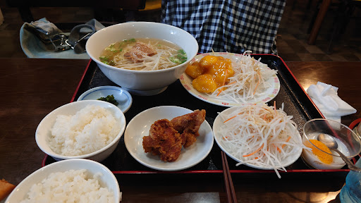東栄 花祭りの湯から浜松に戻る途中にある町中華のお店 花祭り温泉に来るたびに気になっていたお店です 外見はお世辞にもいい感じとは言えないお店 しかし中は中々味のあるお店 でした。 メニューは豊富でランチメニューもバラエティーでした。 今回頂いたのはランチメニューの酢豚と台湾ラーメンのセットとエビマヨと塩ラーメンのセットを頂きました。 味はまあまあという感じでした しかしどちらもご飯とサラダと 揚げ物と漬物とデザートが付いていてボリ...