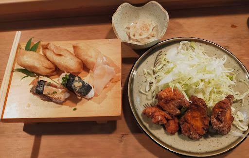 Read more時津の旧道沿いにある老舗のお寿司屋さん。映画サバカンのロケ地になったことから生まれたサバカン定食。味噌汁が付いて750円はコスパ良いと思います。 内容は鯖の缶詰をネタにしたお寿司が2貫、イナリ寿司が3個、鶏の唐揚げが4個、小鉢、写真には写っていませんが、味噌汁が付きます。 サバカン寿司は想像通りの味、イナリも小ぶりですが美味しいです。 唐揚げは鶏むね肉の中ぶりでしっかり下味がつけられていてとても美味しいです。付け合せのキャベツ、タマネギがたっぷりなのは嬉しいです。自家製ドレッシングをかけていただきました。唐揚げと野菜を一緒に食べても美味しかったです。 話し好きの大将と女将さんの2人で営業されています。店の内装が風格を感じさせます。 茶碗蒸しのサバカン定食もいただいたことがありますが、確か9...
