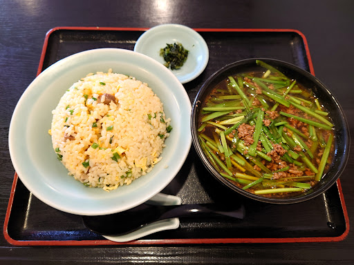 2024年10月15日 お昼時ですが何処に行こうか迷ってました。 検索したら勤務場所から近くにあるじゃないですか! 最近、ラーメン中心に投稿してましたが結局ラーメン強し! 入店してメニューみたら…これは町中華ですね。 ランチメニューのコスパ凄いです。 今回は台湾麺セットを注文しました。台湾ラーメンとチャーハンのセットで1,000円笑 台湾ラーメンは某◯仙はちょっと違いますがこれはこれでアリです。チャーハンはシットリとしつつもパラパラ感もあり◯ これは頻度高めに通いそうで体調管理が大変です。 そう言いながらも行ってしまうのでしょうね。 ごちそうさまでした。